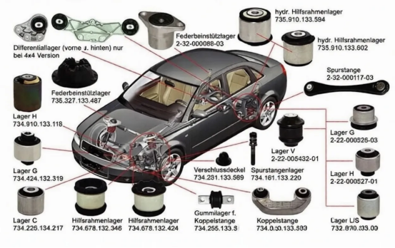 Seperti namanya, bushing karet otomotif merupakan bushing yang terbuat dari bahan karet. Mereka banyak digunakan di berbagai area kendaraan—termasuk sistem suspensi, dudukan mesin, dan drivetrain—untuk meningkatkan kinerja secara keseluruhan dan memberikan pengalaman berkendara yang lebih nyaman.