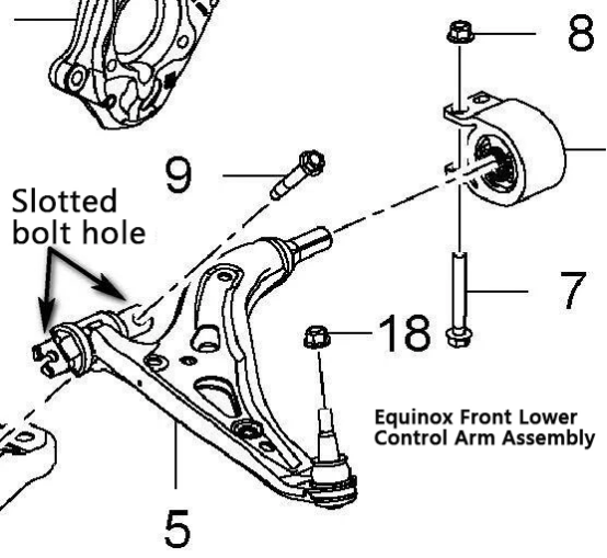 Gambar di atas menunjukkan rakitan lengan kendali depan bawah untuk Chevrolet Equinox. Panah menunjukkan struktur lubang baut terbuka di dalam rakitan bushing.